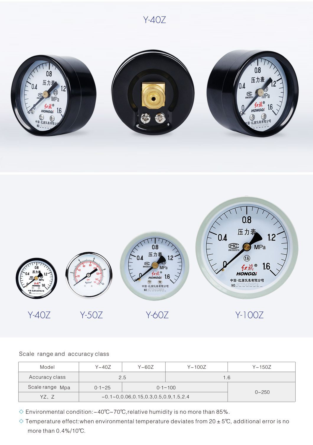 HongQi-instrumentin Y-sarjan painemittarit: pohja- tai keskitakakiinnitys